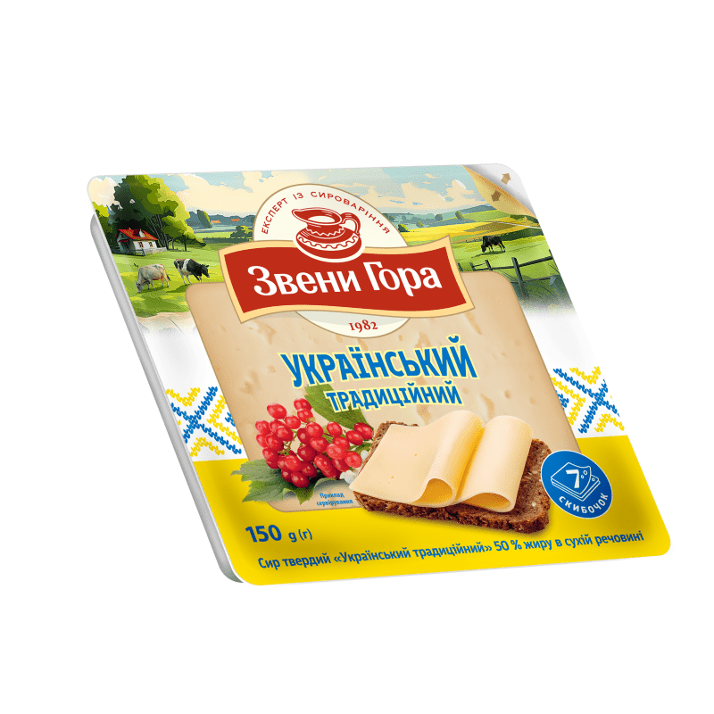 Ukrainskiy is evidently the most common sort of cheese in our part of the world. Its traditional expressive cheese taste with a slight sour note is known to everybody: grannies, mommies and kids. Our craftsmen treat this cheese with great respect, making it strictly according to the classic recipe to bring you the familiar taste you love.
