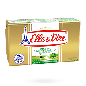 Elle & Vire використовує весь свій досвід у виробництві традиційного масла. Якщо хочете бути справжнім шеф-кухарем у себе на кухні, масло Elle & Vire універсально і ідеально підходить абсолютно для всіх типів страв, випічки. Цей продукт надає особливий особливий вершковий смак! Який варіант оберете ви?
